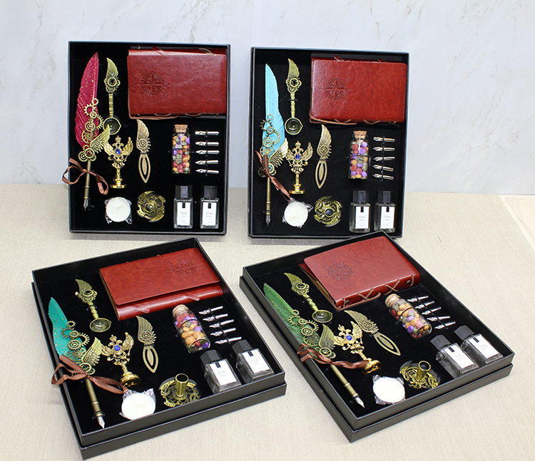 DERİ DEFTERLİ DİVİT HOKKA VE MÜHÜR SETİ MODEL 1