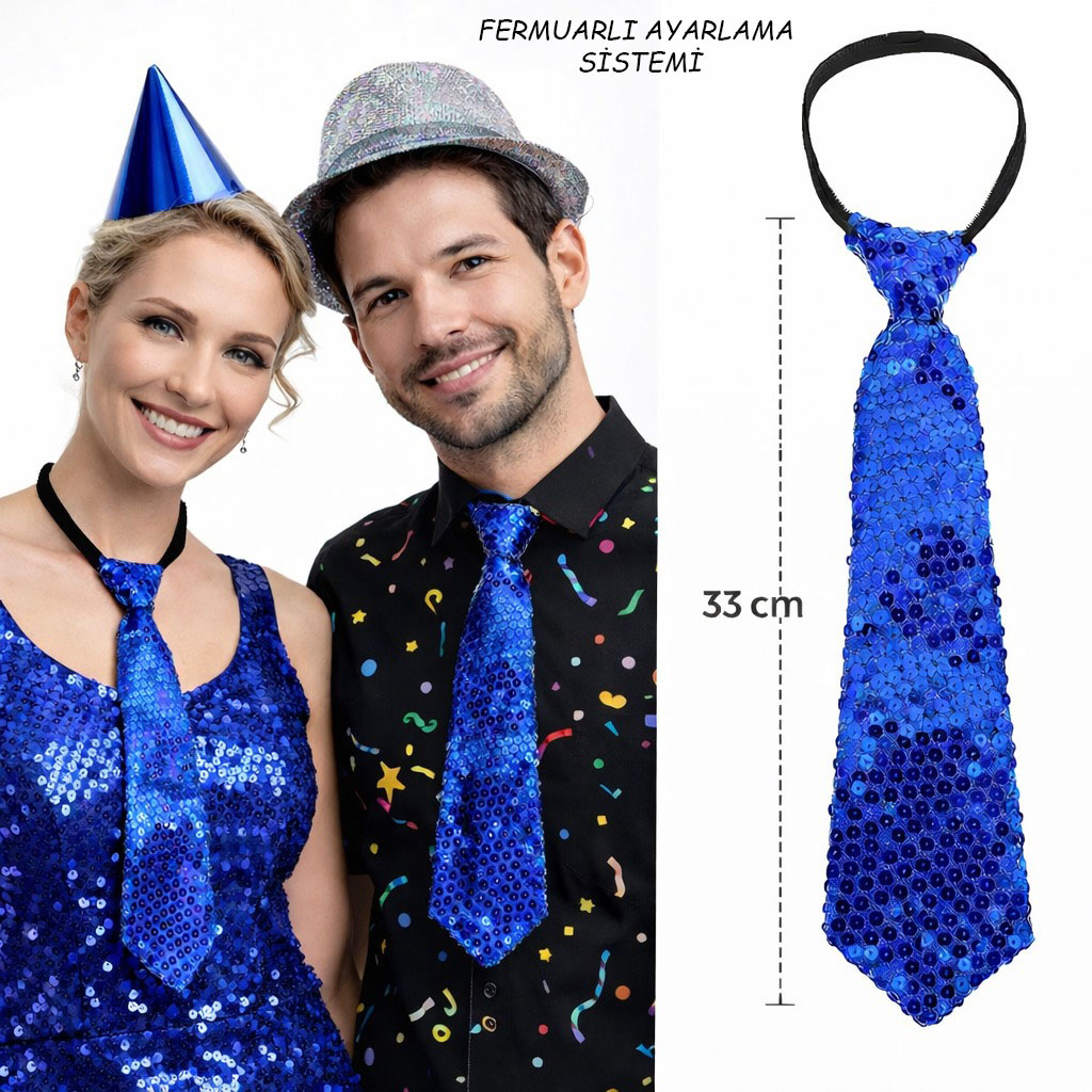 1 Adet Mavi Renk Pul Payetli Işıltılı Parti Kravatı 33 cm