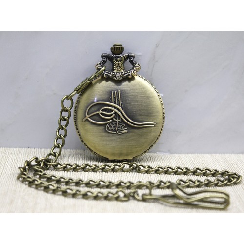 OSMANLI TUĞRALI KÖSTEKLİ SAATÜrün ÖzellikleriOsmanlı tuğralı köstekli saat, nostaljik ve otantik tasarımıyla dikkat çeken şık bir aksesuardır. Bronz kaplama metal gövdesi, Osmanlı tuğrası kabartmalı kapağı ve klasik zincirli tasarımı ile tarihî dokuyu yansıtır. Açılır kapak özelliği sayesinde kadran kolayca görülebilir ve rahat kullanım sağlar. Hem günlük kullanım hem de koleksiyon severler için ideal bir seçimdir.Paket İçeriği1 Adet Osmanlı Tuğralı Köstekli Saat